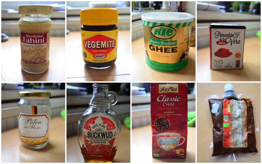 Mindful eating is another important consideration. This includes chewing your food so that food becomes liquid, and liquid is treated as if it was food. Hugely beneficial for your over all health! Moreover, taking just a few moments before every meal giving thought and thanks to all the people who made it possible for the delicacies to be on your plate is an imminent reminder of the interconnectedness of this world. Logic has it, that you would want to treat all those people, animals and soils who allow you to survive and rejoice in a rather kind way. Are we respecting this world enough for what it gives us? Inner peace and happiness can impossibly be achieved without the appropriate outer attitude and lifestyle. Our international vegetarian kitchen is a constant reminder of one of the benefits of globalization: Tahini from Macedonia, Vegimite from down under, Ghee from India, Pimenton from Spain, Bee polen from the Acores, Maple syrup from Canada, Chai mix from India, Miso from Japan… Another yummy, healthy, easy, gluten–dairy–nasty free recipe soon to follow, I promise.