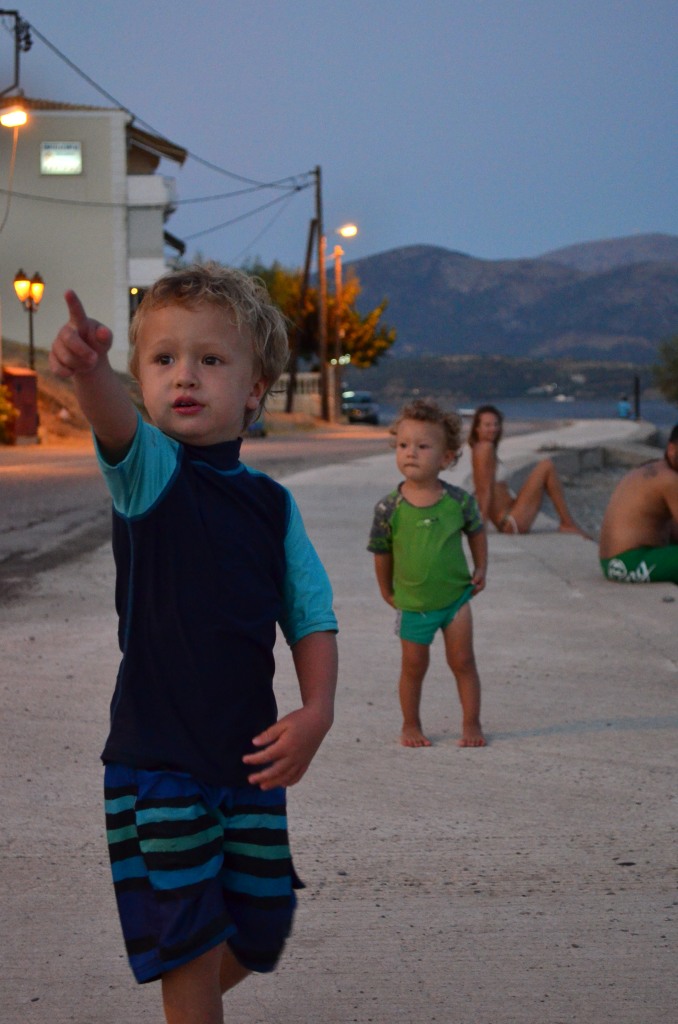 A week later, just as we start to lament the lack of other kids boats in this area, a netted boat (means either dogs or kids) docks onto our pontoon in Meganisi. Their kids screaming is like music to our ears. It takes less than two minutes to get chatting, less than twenty to share a coffee and less than an hour in the beach taverna to convince them to stay the night. They came as strangers and left as friends and we look forward to more shared family fun together next summer.