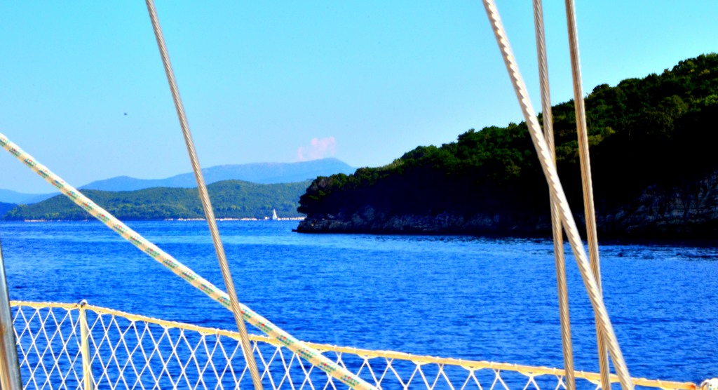 Early morning rise as the sky turns pink. Escaping the herds. Off we go as the kids wake up slowly. Sleepy eyes taking in the lush green islands around us. Undiscovered bays falling of the steep golden cliffs. Schools of fish reflecting the sunlight. Past a deeply indented cave. Tempted to stop, but the kids cry for breakfast. Chai brewing, toast smelling deliciously as we pass through the Maganisous Canal. Breathtaking, so much beauty at once. Diving would be incredible here. On we go, a perfect 15 nm later we turn into Spartachoriou, late morning, just as the herds have left. The quay to ourselves, welcomed with mooring lines. Our anchor gets a break. Babis’ tavern behind the tree glows in Caribbean style. Beach bar. Hammocks hanging of the trees. Internet to send of these updates. Protection from the forecasted Northerlies. Are we staying the night? The mooring man asks. For sure! Maybe even two – or four.